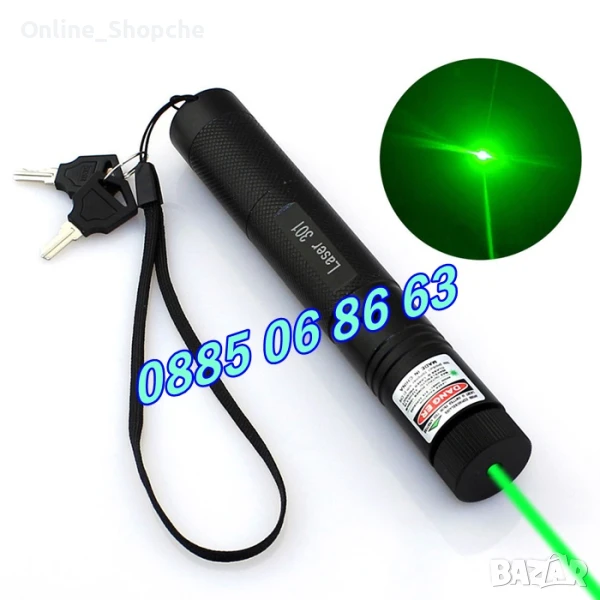 Лазер пойнтер с проекция до 10000 метра, мощен зелен лазер