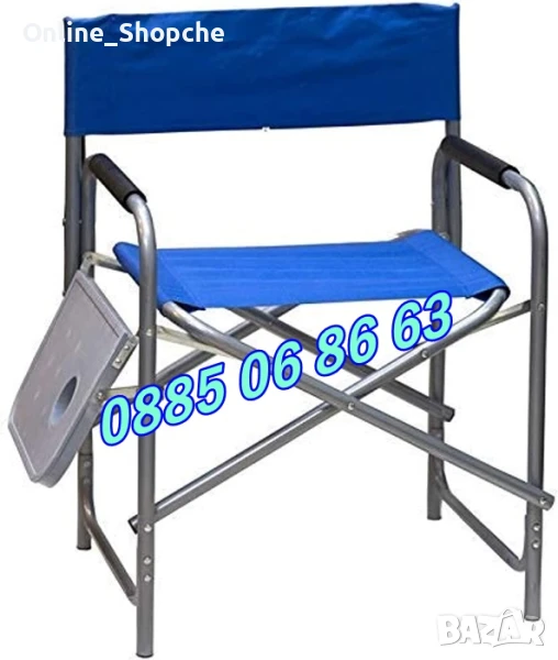 Сгъваем стол с масичка и поставка за чаша, сгъваем стол за къмпинг е изработен от висококачествени материали: тексил, метал и пластмаса