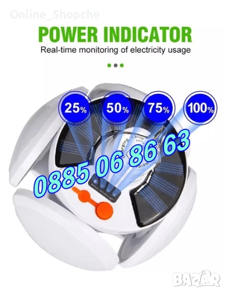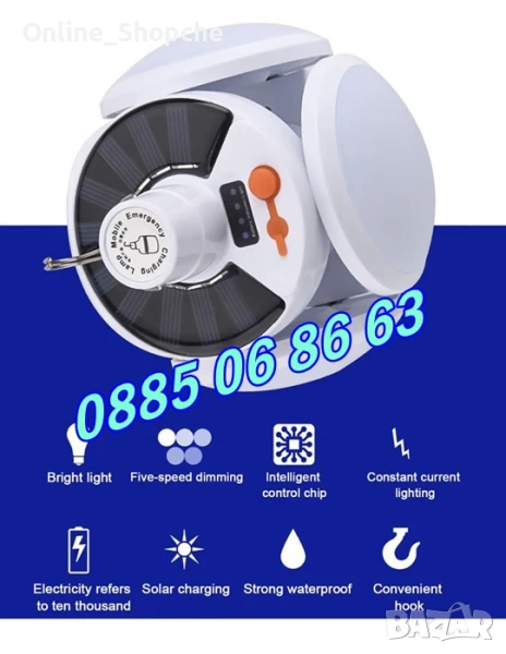 - Тип осветление: соларна сгъваема лампа