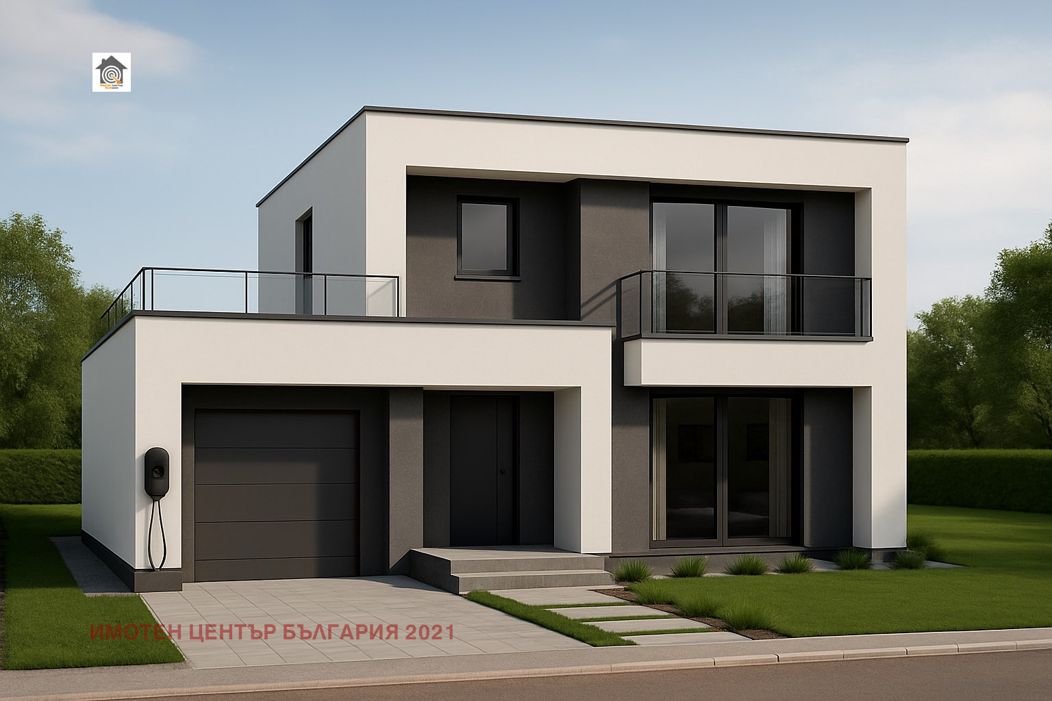 - Модерен дизайн с прав покрив и изчистена геометрия.