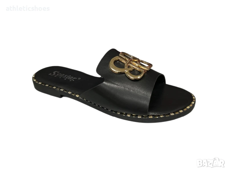Дамски чехли на равна подметка от еко кожа със стилна декорация .