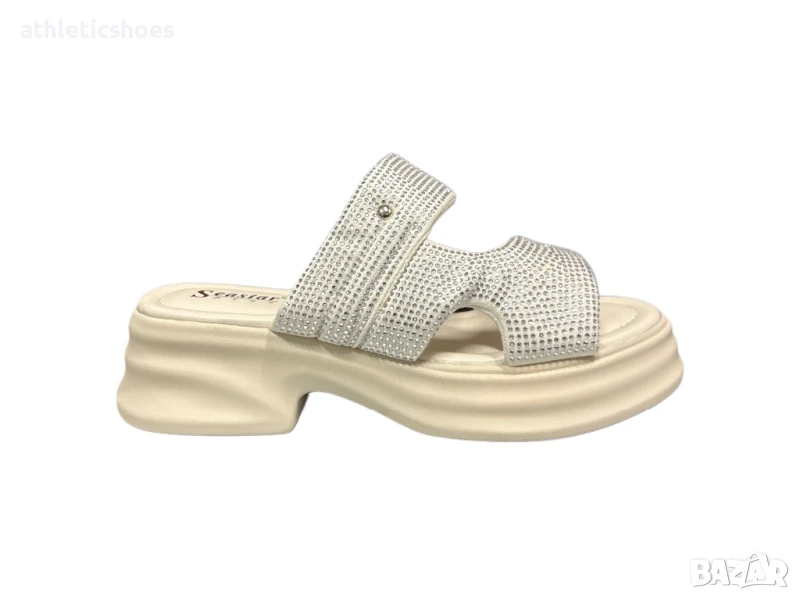 Дамски олекотени чехли на платформа с красива декорация от цирконии .Подходящи вашите специални поводи и разходки.