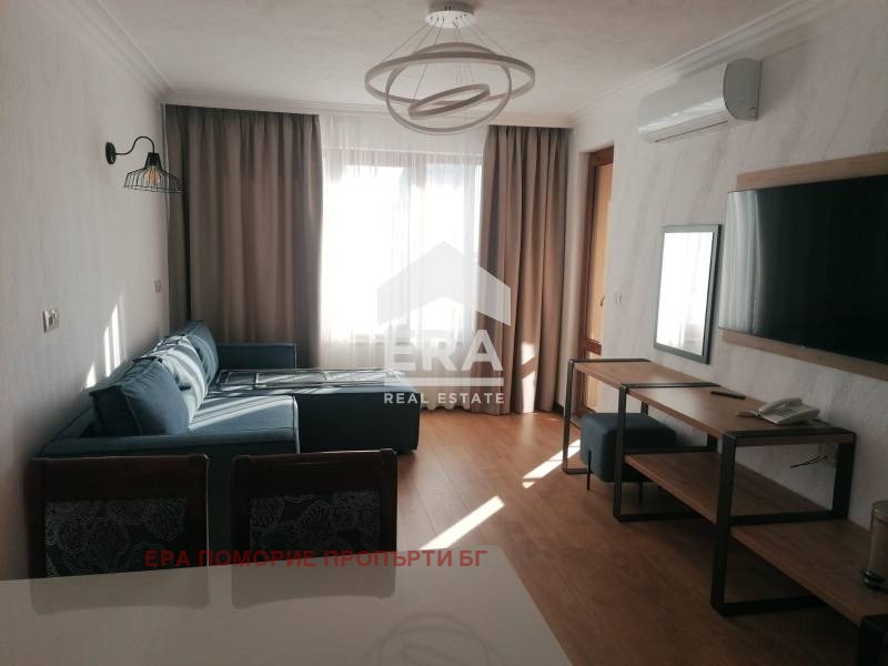 Двустаен уютен апартамент , разположен в нова сграда . Състои се от хол с кухненски бокс , спалня, баня с тоалетна, тераса и коридор. Разположен е на първи жилищен етаж . Жилището е много слънчево и просторно , напълно обзаведено с нови модерни мебели. С луксозни общи части и асансьор . В непосредствена близост до плаж, магазини, и всичко необходимо за удобство на ползвателите.