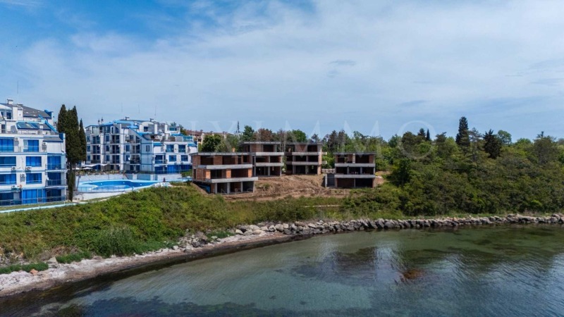 Представяме за продажба изключителна къща, част от ансамбъл от четири вили разположени на първа линия море и плаж, в тих и живописен морски залив в Поморие.