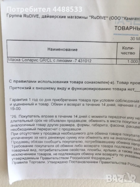 Маска за подводен лов и фридайвинг с диопрти DACOR → Обява 50516204