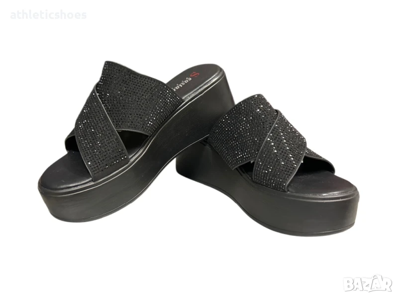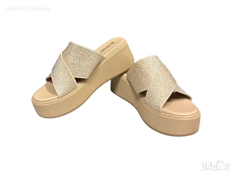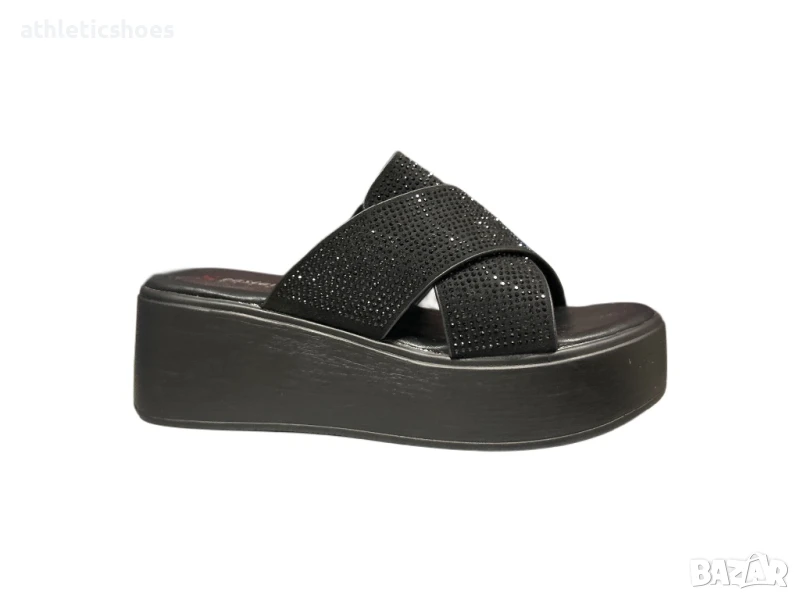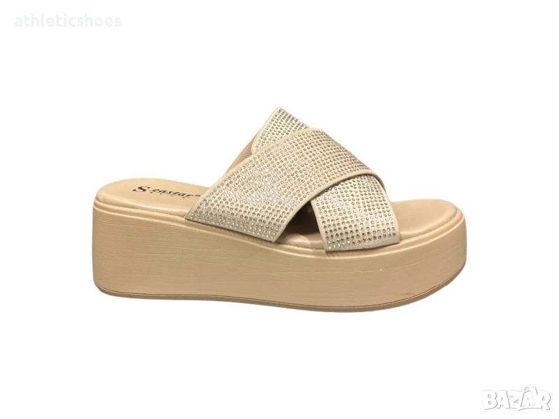 Дамски чехли на платформа -олекотена . Стилни с декорация красиви камъни , удобни за летните дни. Подходящи за разходки в летните дни.