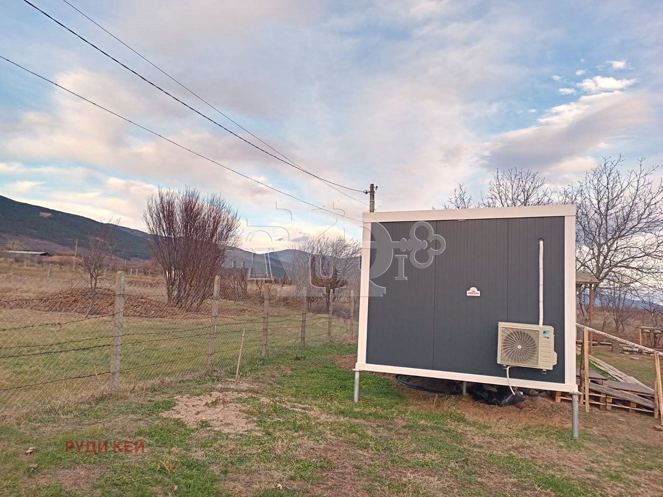 Също така в имота има чисто нова метална констукция (контейнер) с размер от 21кв.м. Контейнер е висок клас с изолация, климатик и обзавеждане. Състои се от две стаи с правилна форма и баня с тоалетна.