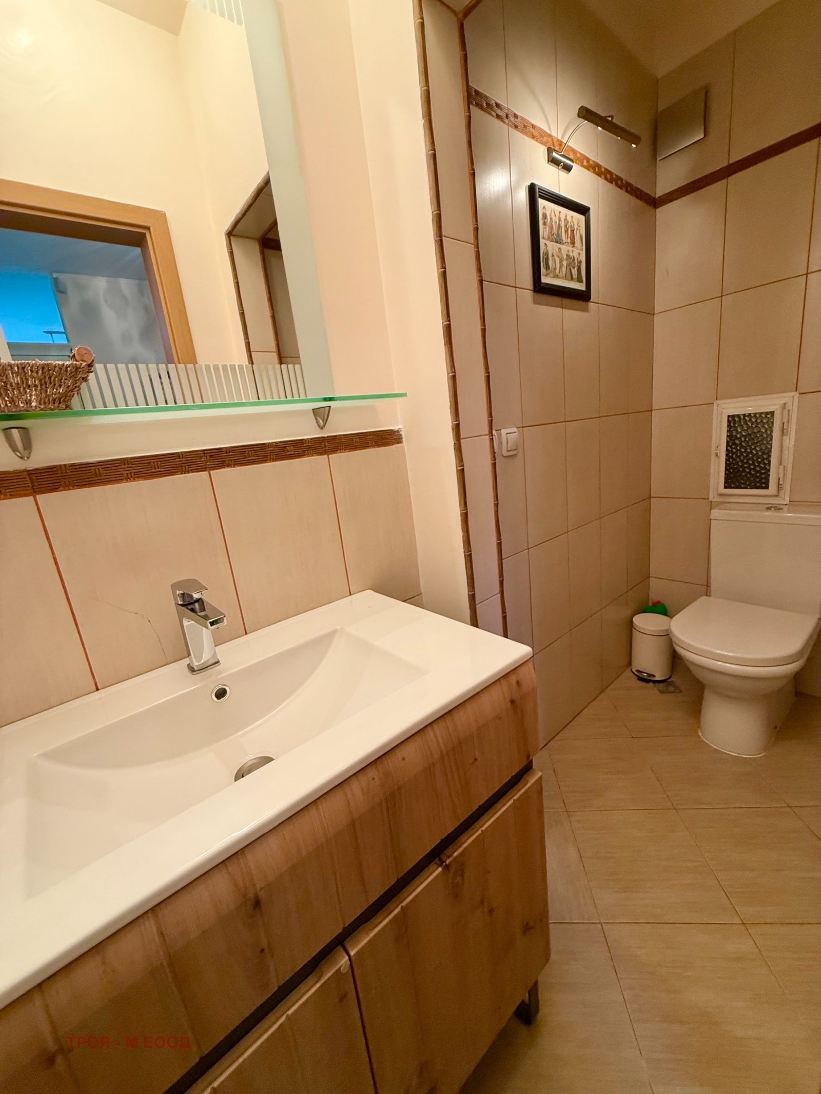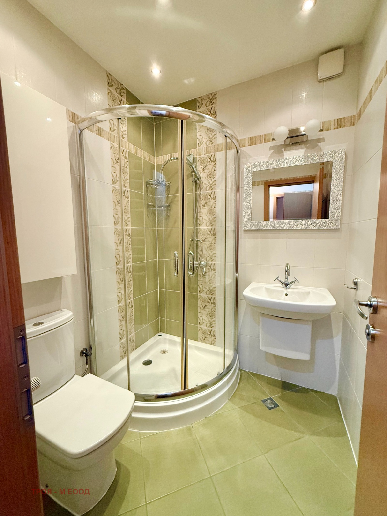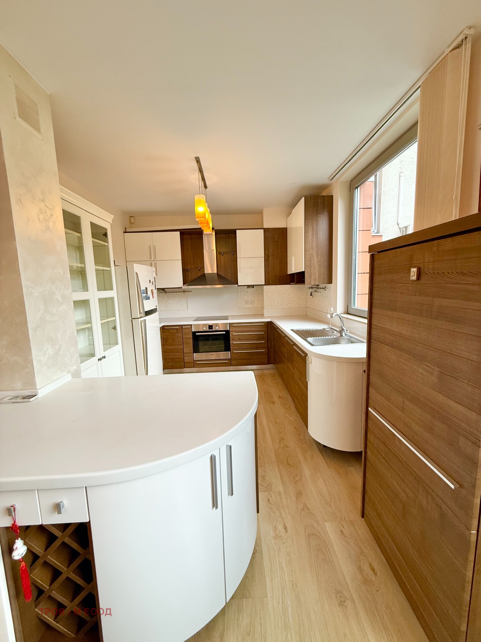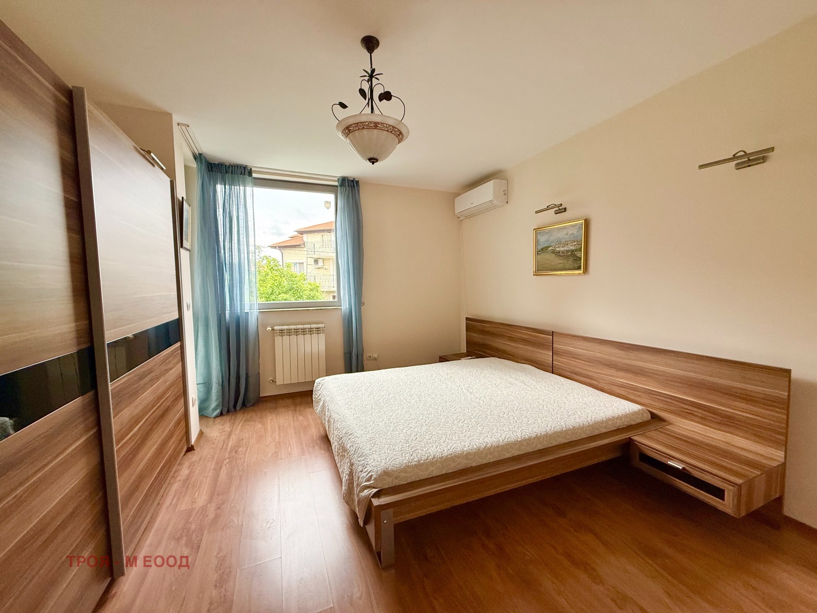 Жилището разполага с просторен хол с площ около 35 кв.м,напълно оборудвана кухня с всички необходими ел.уреди, три големи спални,2 бани с тоалетна,една самостоятелна тоалетна за гости,мокро помещение и три остъклени балкона. Апартаментът се отдава изцяло обзаведен.