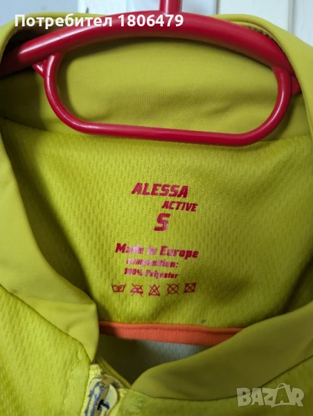 Тънко горнище Alessa, размер S по етикет, иначе е S-M. Използвано е, но в отлично състояние. Цветът е електриков, жълто-зелен.
