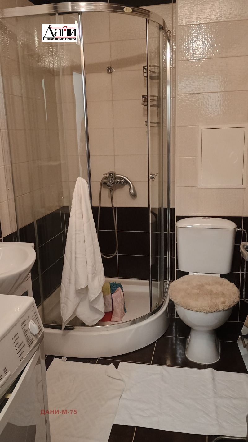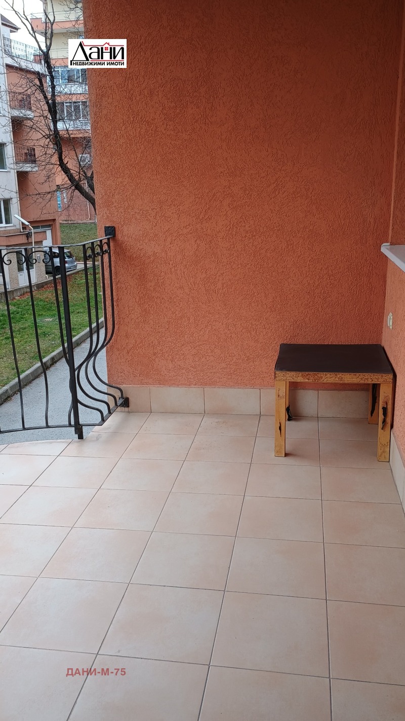 Недвижими имоти Дани отдава под наем двустаен тухлен апартамент ново строителство , в кв. Център.Площ 65 кв.м. етаж 2/5.Състои се от:Коридор, голям дневен тракт с кухня и излаз на тераса, спалня с излаз на тераса, баня и тоалетна, килер.Жилището и напълно обзаведено и оборудвано с нови електроуреди, ПВЦ дограма, блиндирана входна врата, интериорни вътрешни врати, подови настилки ламинат и теракота.Апартамента е изцяло южен с голяма панаромна тераса.Отопление и охлаждане с висок клас климатик.Входа е с контролиран достъп и домофонна система, изключителено чист и поддържан.Намира се тих и спокоен район/бивша Военна болница/, в близост до магазини, автобусни спирки,център.Отдава се дългосрочно на съвестни наематели, без домашни любимци. Наем 650 лева и депозит.За допълнителна информация и организиране на огледи, заповядайте в нашия офис: Град Шумен, ул. Христо Ботев 12/ Казанджийската/ и на тел.0895840820 или 0896853663.