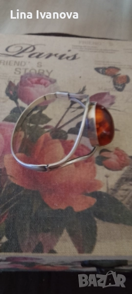 Сребърна гривна с кехлибар. → Обява 50518400