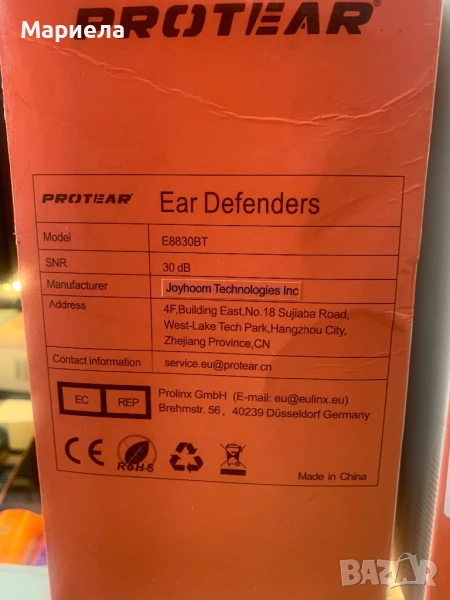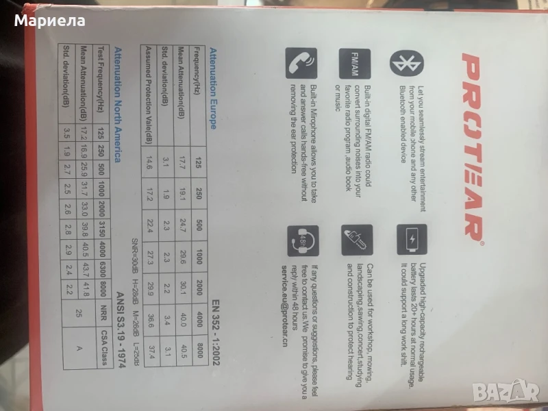 30 (dB), отговаря на европейския стандарт, работи с презареждаща се литиево-полимерна батерия (включена в комплекта) и USB кабел за зареждане.