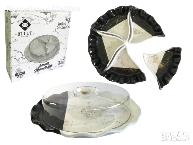 НОВ Ордьовър плато с капак и пет купички е луксозен комплект за сервиране.