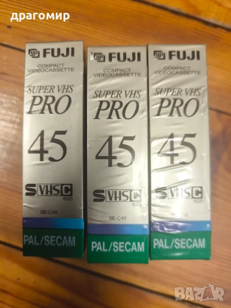 продавам нови видеокасети FUJI SUPER VHS PRO 45 S VHS C,един брой 15 лв, имам още много други фотоапарати, камери, обективи, чанти, светкавици, батерии, зарядни устройства, касети, филтри, ремъци, ленти, при закупуване на повече неща отстъпка