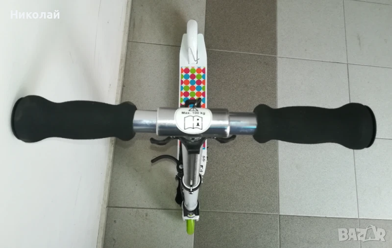 Тротинетката е нова. Редовната цена е 177лв. Намалена е с 40%, защото е без опаковка.