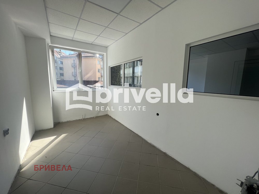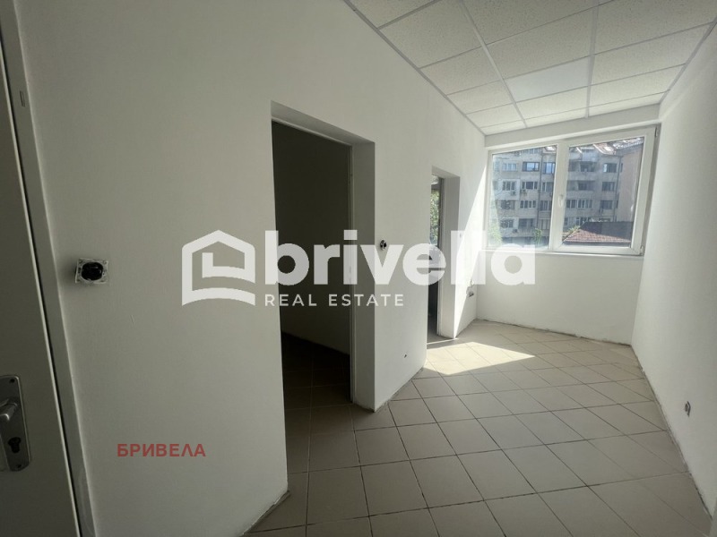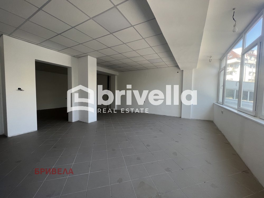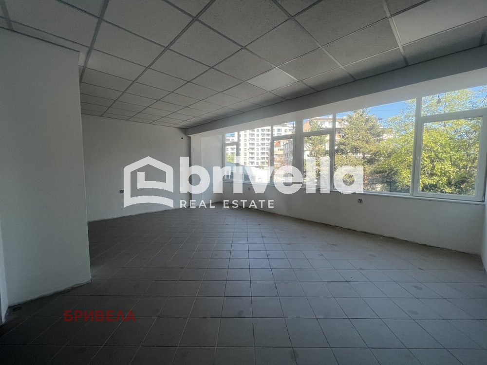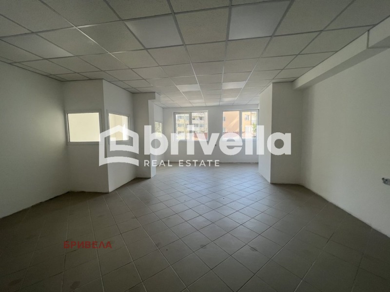ПРОСТОРЕН ! ! ! ФУНКЦИОНАЛЕН ! ! ! Предлагаме на вашето внимание офис, със следното функционално разпределение: коридор, голямо търговско помещение, 5 малки помещения и саниранен възел. Има възможност за закупуване на 3 надземни паркоместа на цена от 60 000 евро. Сградата се намира на изключително комуникативно място, в близост до спирки на градски транспорт, магазини, училище и детска градина. За ваше улеснение прилагаме схема на разпределение на имота.