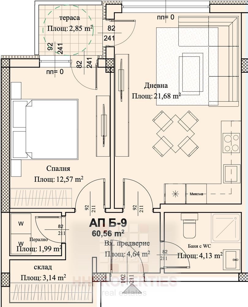 светла дневна с кухненски бокс,