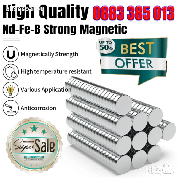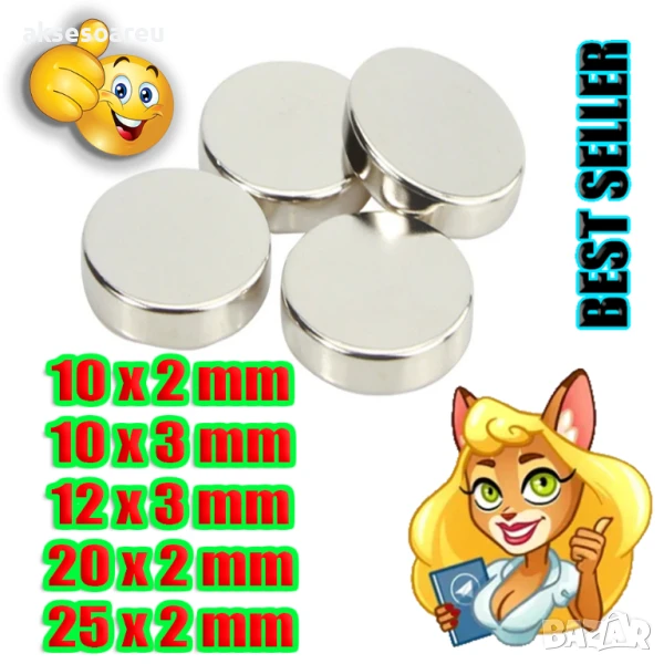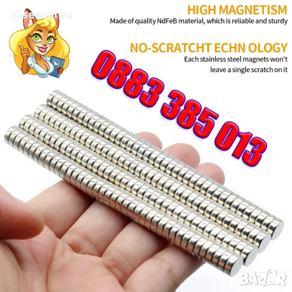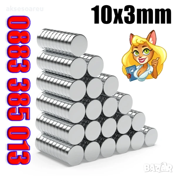 10 бр. Супер силни нови неодимови дискови малки 10 х 3 мм. мощни магнити