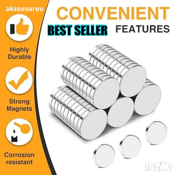 10 бр. Супер силни нови неодимови дискови малки 20 х 2 мм. мощни магнити за