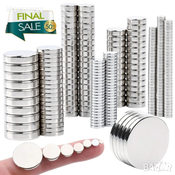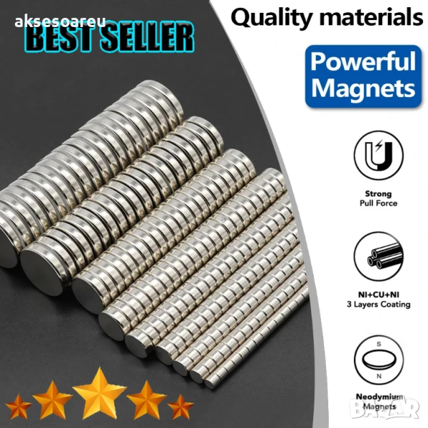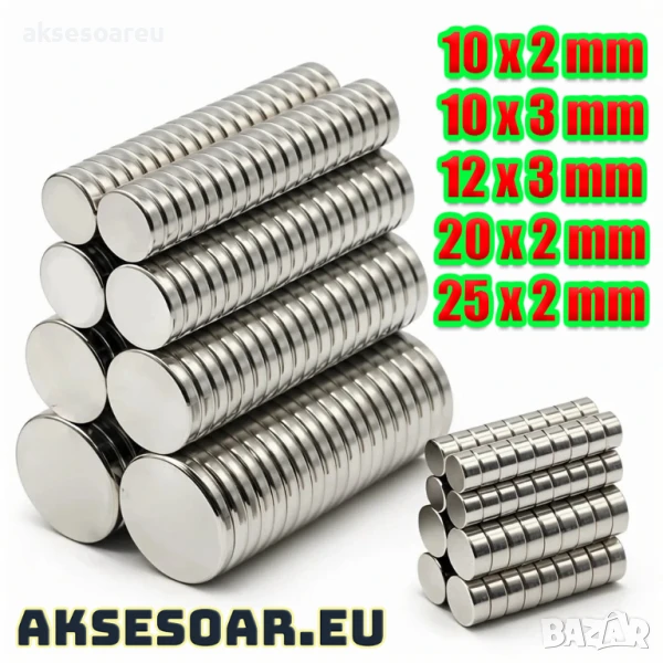 10 бр. Супер силни нови неодимови дискови малки 25 х 2 мм. мощни магнити за