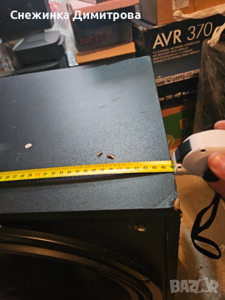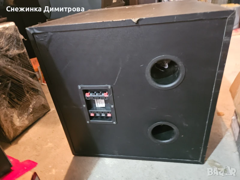 Работи отлично, има скъсано, но не пречи да работи. Мощен звук. Праща се само с капаро 30 лв заради теглото.