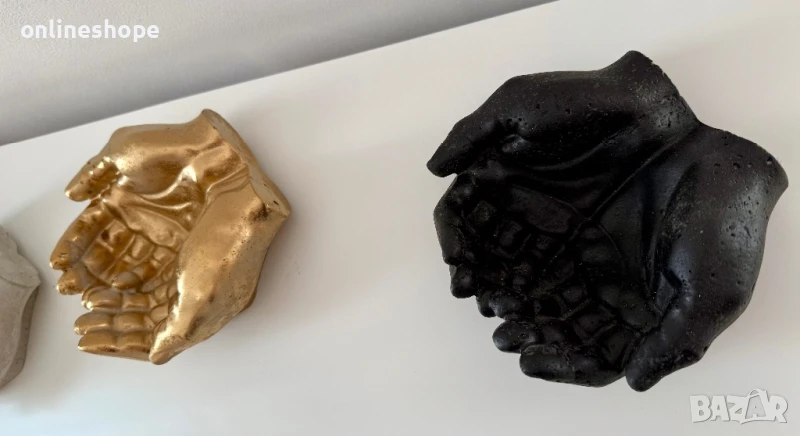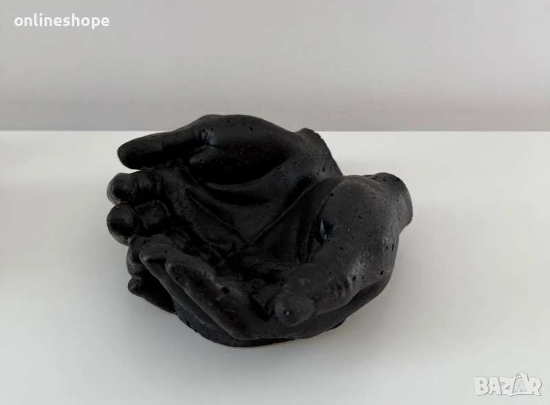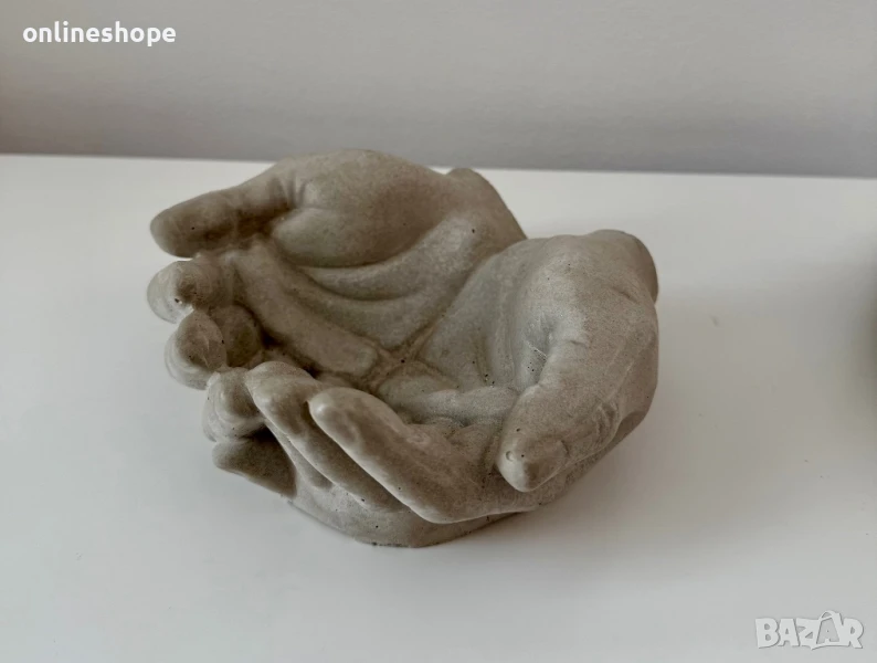 Уникална декоративна поставка, изваяна под формата на две събрани ръце – символ на грижа, закрила и щедрост. Всеки модел е ръчно изработен с внимание към детайла и артистичен усет. Подходяща за: