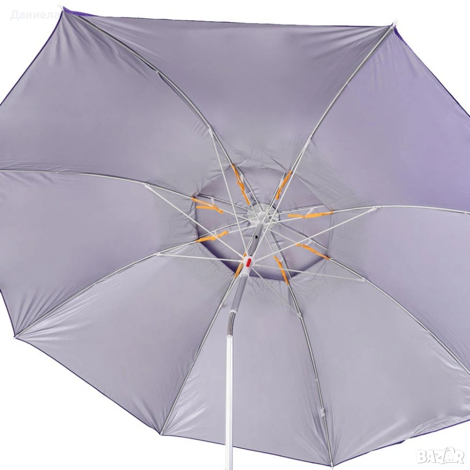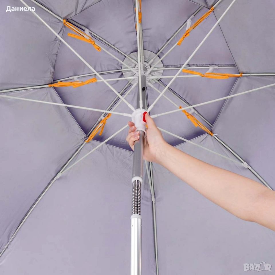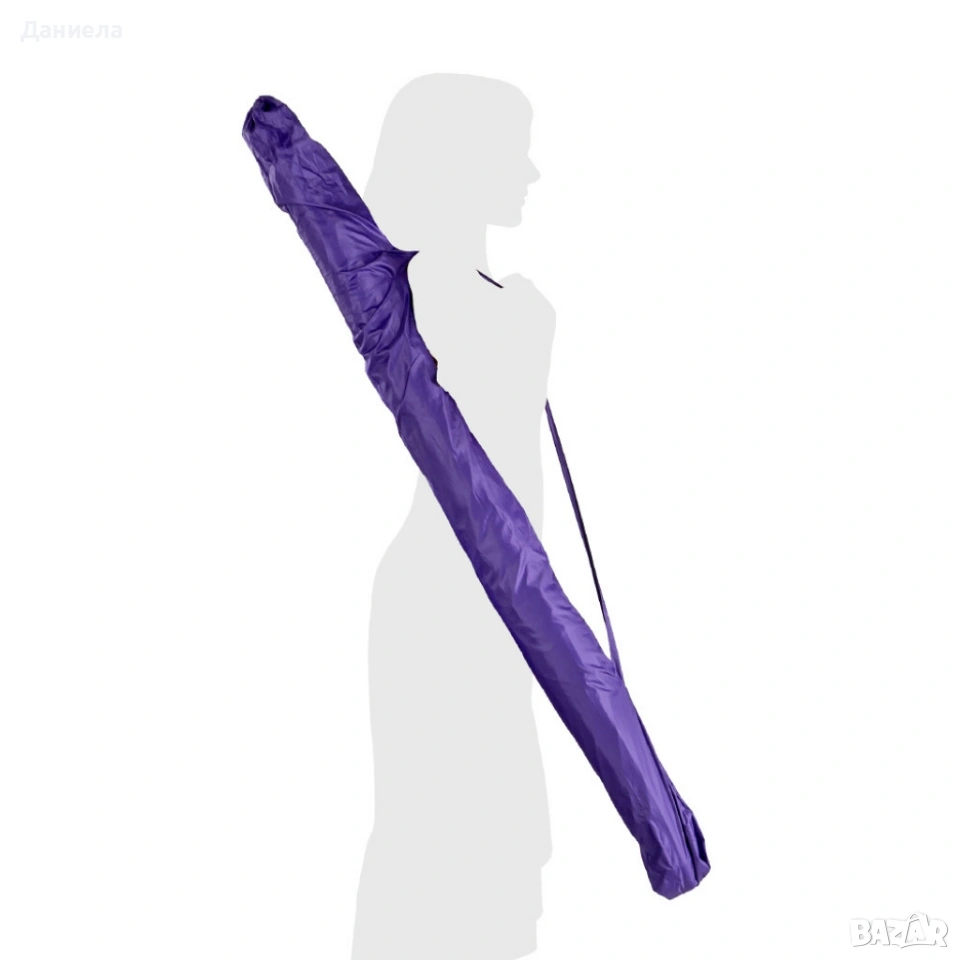 Плажен чадър;Плажният чадър Muhler YL1039 е стилно и практично решение за лятото. Създаден за защита от слънце и комфорт на плажа, в градината или около басейна, той комбинира лека конструкция и здрава изработка. Идеален е за ежедневна употреба и лесен за пренасяне.Модел: Muhler YL1039;Размер: D180 x H180 см;Материал купол: 170T полиестерна тъкан;Конструкция: Стоманен стълб 32/32 мм с бяло прахово покритие;Ребра: Фибростъкло;Допълнителна защита: UV покритие;Аксесоари: Включена найлонова чанта за носене.