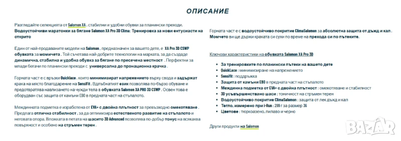 Salomon Xa Pro 3D Cswp J номер 34 водоустойчиви детски туристически обувки / маратонки