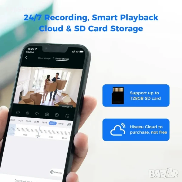 Преглед в реално време и интелигентно възпроизвеждане: Добавете тази безжична камера към APP на телефона или Hiseeu NVR система, можете да видите камерата, независимо къде се намирате. Ако пропуснете важни събития, гледайте възпроизвеждането по всяко време.