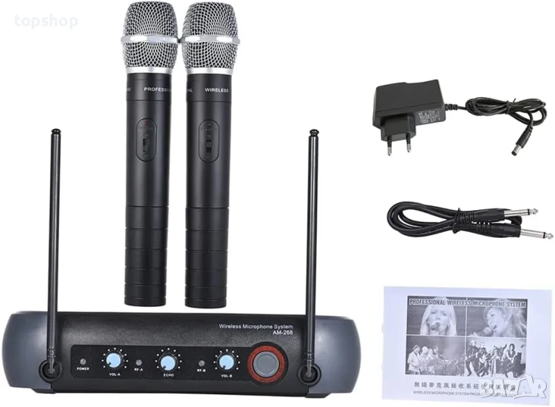 AMMOON AM-268 двуканални vhf безжични WIFI микрофони, 40 метра обхват, ехо ефект, изолиране на шума