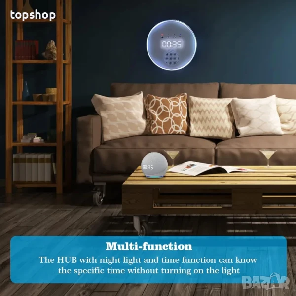Режим на нощна светлина - Можете да регулирате нощната светлина в приложението. В тъмна среда алармената база ще излъчва синя LED светлина.