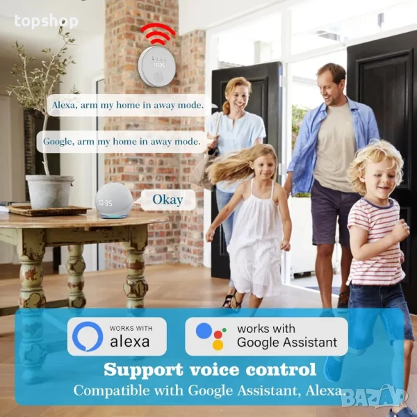 Гласов контрол - Домашна алармена система, съвместима с Alexa и Google Assistant чрез приложение. Режимите „Отсъствие“, „Деактивиране“ и „У дома“ могат лесно да се управляват с глас в режим „свободни ръце“.