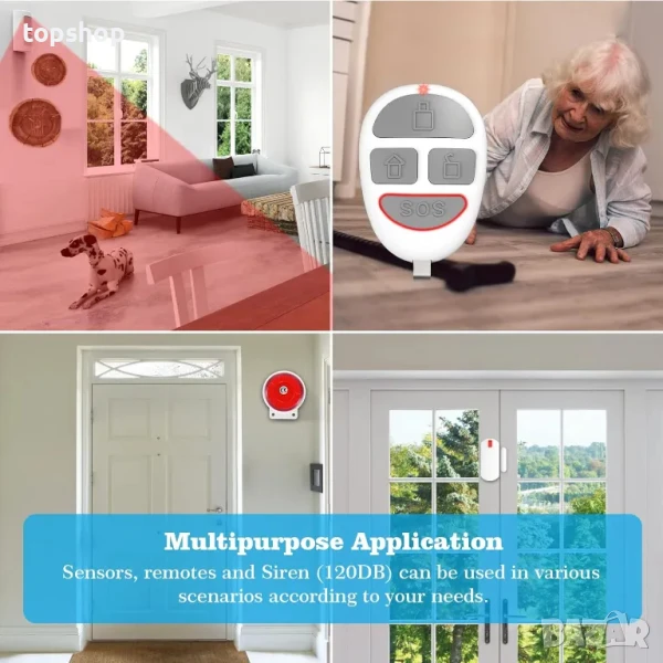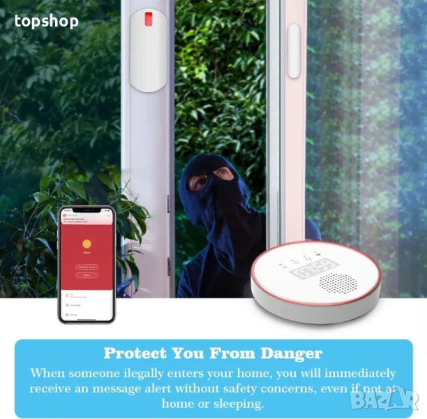 Направи си сам монтаж - Идеално решение за апартаменти и кооперации. Където и да сте, можете да промените режима на защита и да управлявате устройствата си в приложението. Чувствайте се свободни да добавите други компоненти, като сензор за врата, пасивен инфрачервен детектор, безжична соларна сирена, детектор за вода, звънец, детектор за дим и др.