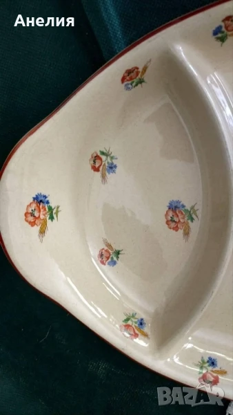 🥀Масивно плато с дължина 36 см и запазени и чудесни цветове ,но с лека пукнатина на глазурата, която няма да се вижда при пълно плато и не пречи за ползване.