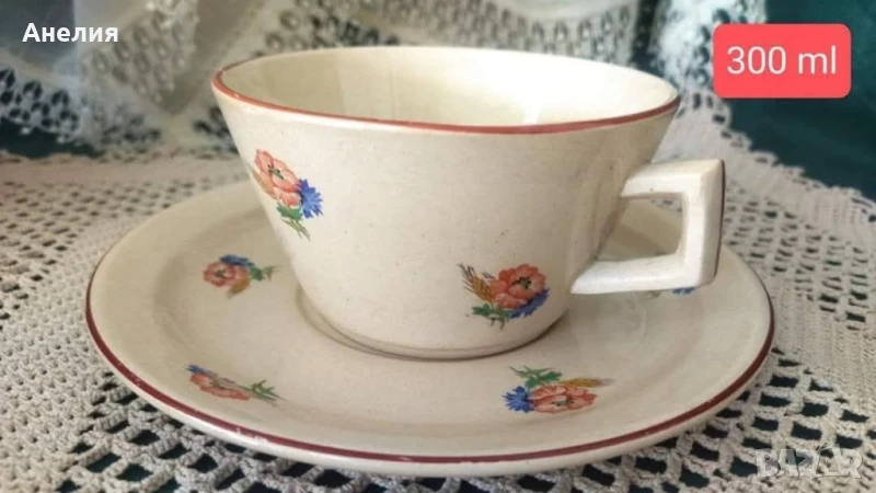 🥀4 сета с чаша 300 мл с чиния перфектни х 10 лв.Нови.