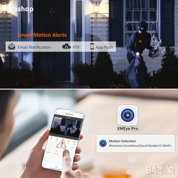 Откриване на движение: Незабавно известие по имейл за откриване на движение, за да знаете точно какво се е случило. Използвайте DVR, за да персонализирате откриването на движение точно според вашите нужди: поставете гранична зона и т.н