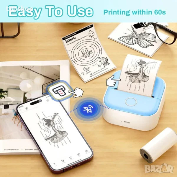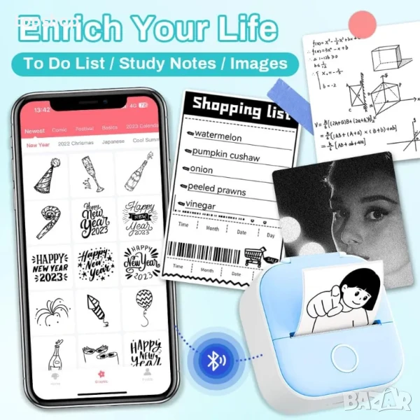 Принтерът ви позволява да отпечатвате графични елементи (снимки, бележки, стикери, графики, уебсайтове) от вашия телефон/смартфон/таблет.