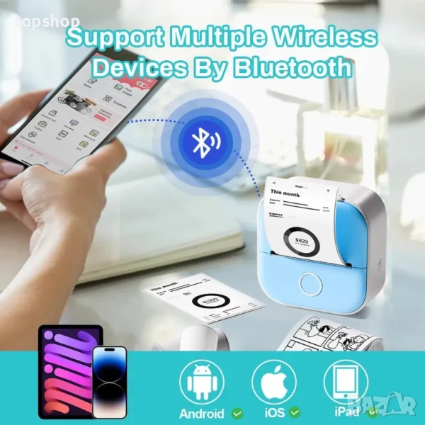 ПЪЛНА СЪВМЕСТИМОСТ С МОБИЛНИ УСТРОЙСТВА С ANDROID И IOS. (Забележка! За IOS принтерът работи само с iPhone, не работи с iPad таблети).