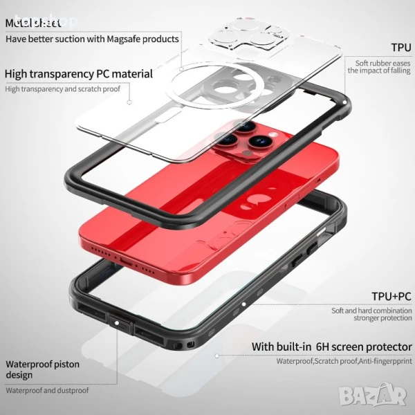 Представяме ви водоустойчив калъф за iPhone 15 Pro Max, специално създаден за вашето устройство. Не става въпрос само за това да запазите телефона си здрав; този IP68 сертифициран водоустойчив калъф е идеален за водни спортове и ежедневна употреба. Вземете го за плуване, туризъм, каране на ски или друго приключение без притеснение. Този калъф предлага 360-градусова защита на цялото тяло, предпазвайки телефона ви от вода, прах, сняг и мръсотия. Вграденият HD пластмасов протектор на екрана гарантира, че екранът на вашия телефон остава без драскотини, като същевременно запазва чувствителността на допир. Освен това е съвместим с аксесоари и безжични зарядни устройства MagSafe. Потопете се в света на безпроблемното мобилно забавление с този универсален калъф.