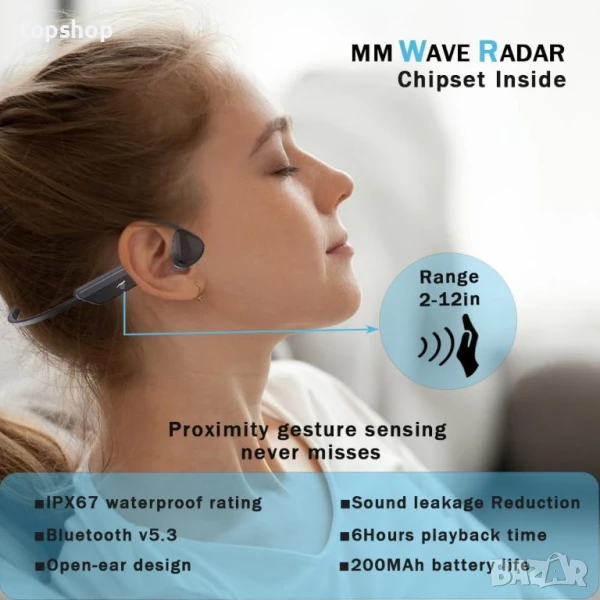 Слушалките LaJao с костна проводимост разполагат с иновативна технология за разпознаване на жестове с изкуствен интелект, позволяваща управление със свободни ръце чрез прости жестове като помахване или потупване, идеални за дейности като бягане, колоездене или бокс. Те идват с вграден mmwave радарен сензорен чип, който позволява команди с жестове в обхват от 38 сантиметра, добавяйки елемент на елегантност към вашите взаимодействия. Тези слушалки са IP67 устойчиви на изпотяване и водоустойчивост, като предлагат 6 часа непрекъснато възпроизвеждане и 10 дни в режим на готовност само за 2 часа зареждане. Те поддържат работа в двоен режим, както с разпознаване на жестове, така и с традиционни физически бутони за гъвкаво потребителско изживяване. Тези слушалки с отворени уши са перфектен избор за тези, които търсят удобство и иновации, особено когато носят ръкавици по време на дейности като колоездене или шофиране.