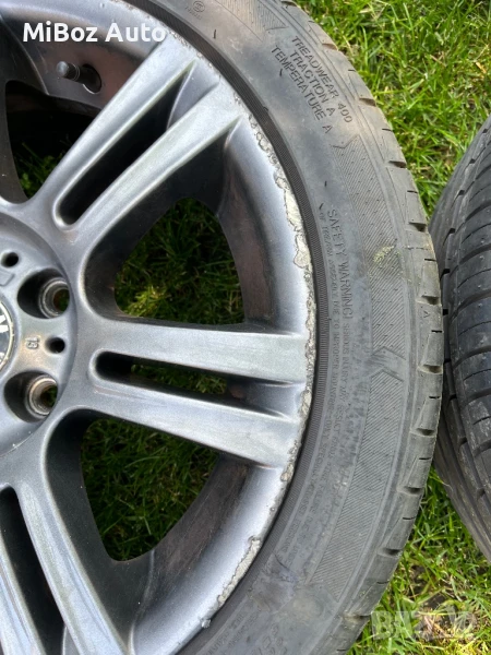 Две джанти имат драскотини по ръбовете (вижда се на снимките) и двете гуми са изтъркани отвътре.