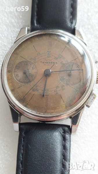 Предлагам за продажба колекционен мъжки часовник "Tavannes chronograph" произведен през 40те години на миналия век.