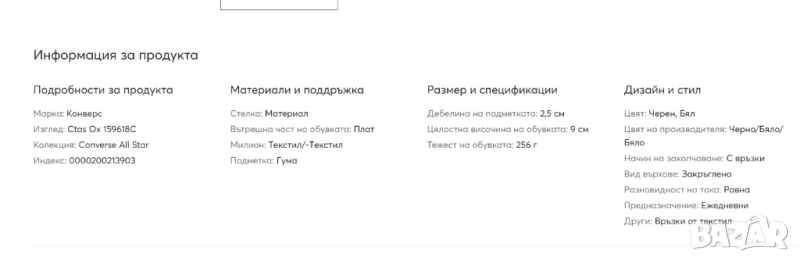 Този чифт се предлага в същата конструкция като много от цветовете на Chuck Taylor от класическата школа. Точно както при оригиналните обувки, горната част е с издръжлив плат, допълнен от масивна и издръжлива междинна подметка. С наследство, датиращо от 70-те години, не е изненадващо, че тези маратонки се смятат за най-емблематичните на Converse!