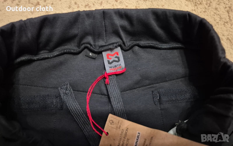 Много качествен и интересен панталон на немската фирма Wurth.Модерна кройка ,смесица между долнище за бягане,ежедневен панталон и туристически панталон.Направен от мека и приятна материя, разтеглив,като в предната част на панталона(коленете,над и под тях) е от по-устойчива материя(също разтеглива).