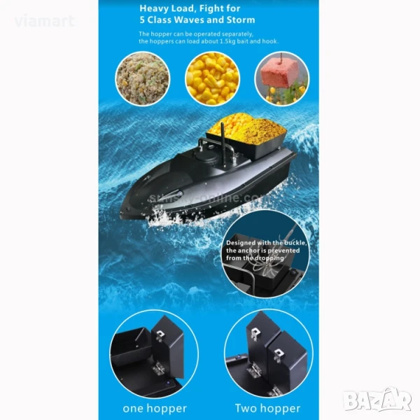 Лодка за стръв с дистанционно Flytec D13C 5200 mAh, Два контейнера → Обява 50526395