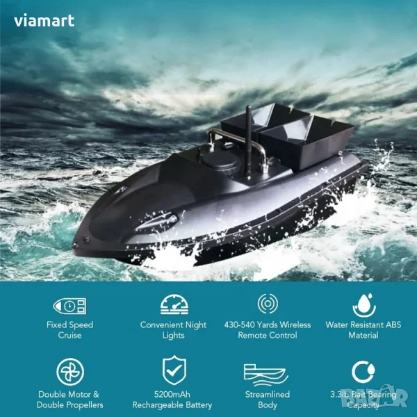 • Предни бели и задни сини LED светлини - за нощен риболов