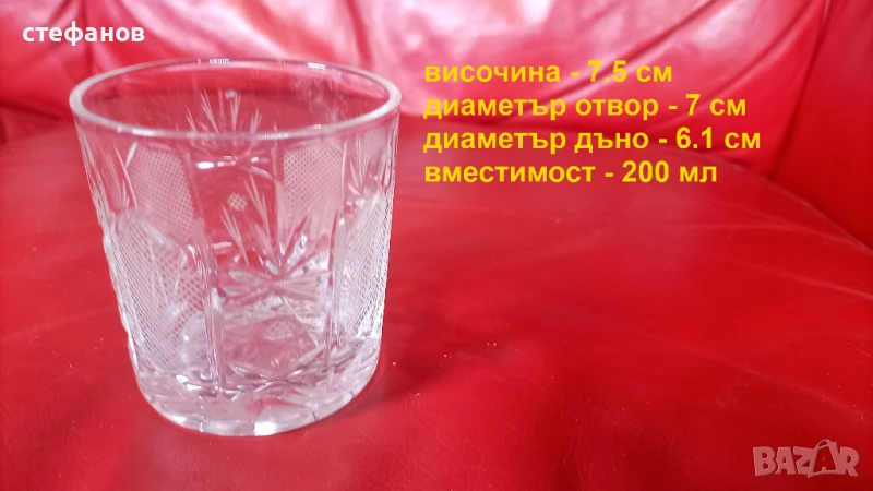 Моля да зачетете внимателно текста към обявата, защото в него е обяснено подробно. На въпроси отговарям тук на съобщение от Вас. Активна ли е обявата може направо да си поръчате харесаното. Чашите не са ползвани и нямат никакви забележки. Посочената цена на обявата е за снимания комплект от 6 бр. Ако някои иска по чаша, цената е 25 лв за брой. Изпращам добре опаковано по Еконт с опция преглед преди да се плати. Куриерската услуга е за сметка на купувача, но подготвям товарителницата през Базарбг и по тази причина имате отстъпка от 10% от нея. Изпращам само на регистрирани в сайта потребители и след като тук на съобщение имам две имена, телефон за връзка и до кой офис на Еконт или до точен адрес да пътуват. Моля да пишете “името” на офиса на еконт, а не улицата на която се намира. Така ще избегнем изпращане към друг офис! НЕ ИЗПРАЩАМ ПО СПИДИ!!! 273сте. Поради евентуални некоректни се обаждам по телефона за потвърждение на поръчката.