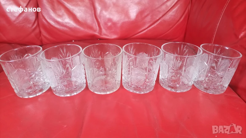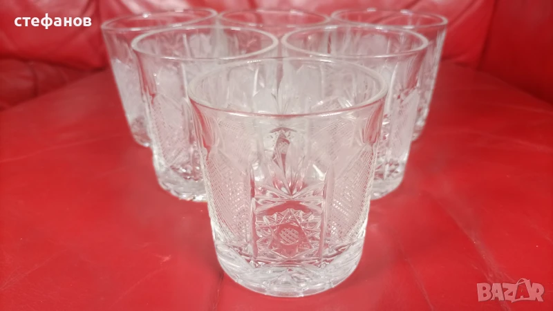 Кристални чаши за уиски, ръчна гравюра, 6 бр → Обява 50526404