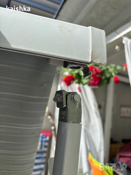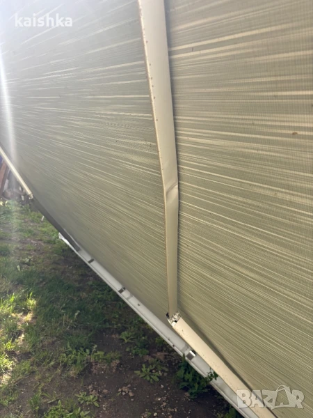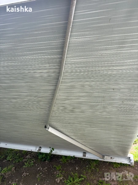 Тентата е обърната от вятър със счупен крак при захващането в горният край и леко усукване, което се вижда на снимките.