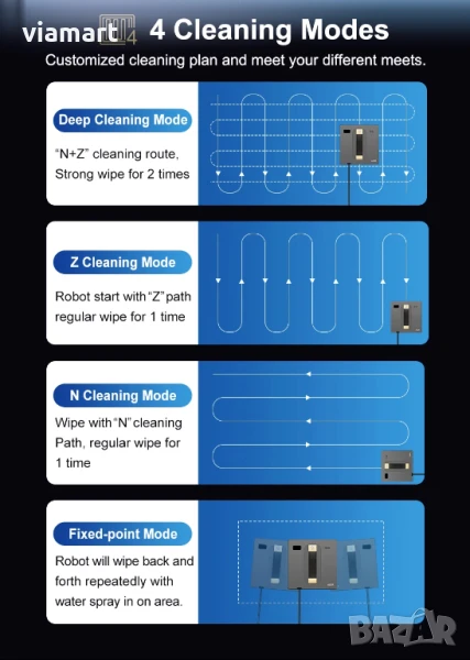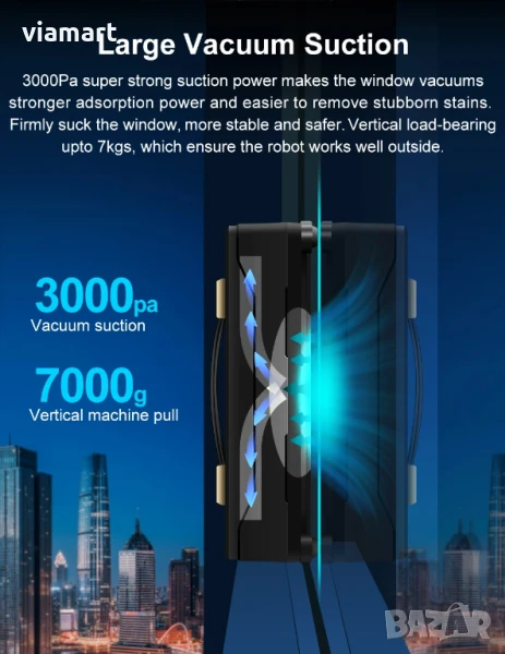 • Силно засмукване - 3000Pa стабилност върху вертикални стъкла